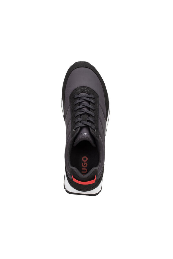 Tênis de corrida com inspiração retrô, em uma mistura de materiais com detalhes em camurça e corpo acolchoado em nylon. Puxador traseiro. Sola leve de EVA com sola de borracha