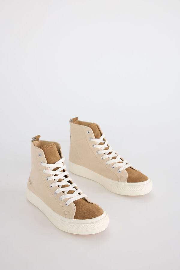 Tênis desportiva de cano alto. Feito de algodão lavado e língua de croute. Detalhe do logo nas costas. Confecionados com algodão Better Cotton. Estamos orgulhosos por sermos membros Better Cotton. O nosso objetivo é que, em 2025, 50% do nosso algodão seja obtido através de Better Cotton, promovendo assim um cultivo mais responsável e apoiando os produtores. Ao escolher os nossos produtos de algodão, está a apoiar o nosso investimento na missão de Better Cotton, que tem como objetivo transformar a produção de algodão em todo o mundo mediante o desenvolvimento de Better Cotton como um produto básico sustentável que é fornecido através de um sistema de Balanço de Massa, ou seja, garante a quantidade de Better Cotton que é fornecida a uma marca como a Cortefiel na sua cadeia de produção, inclusive se não for fisicamente detetável nos produtos finais. Portanto, este produto pode não conter Better Cotton. Pode encontrar mais informações em bettercotton.org/massbalance. Medidas: Altura do cano: 11 cm. Altura da sola: 3 cm.