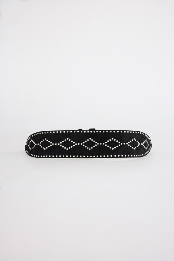 Cinturón tipo fajín - Decoración con tachuelas a lo largo de todo el cinturón - Cuerdas para atar con detalle de borla al final - Talla única - Medidas: Longitud cuerpo: 68cm - Ancho: 10cm - Largo cuerdas 96cm