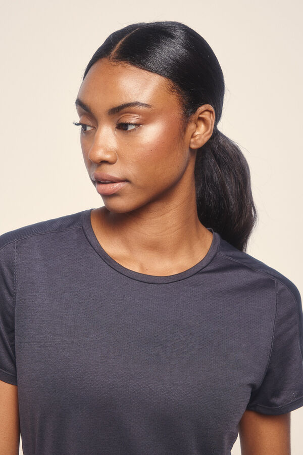 -Camiseta ultraligera negra: Con cuello redondo y manga corta. Fitting cómodo. Con estampado reflectante en parte trasera y tejido a contraste en hombros y parte superior de espalda. Confeccionado en 100% poliéster.