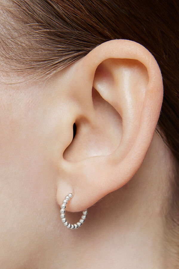 Pendientes de aro cortos TOUS Basic con motivos bola en plata de primera ley. Tamaño pendiente: 10 mm. Cierre presión.