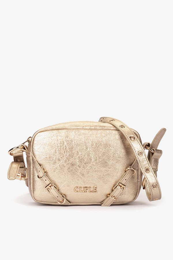 Este bolso en tono dorado metálico irradia estilo y sofisticación en cada detalle. Su acabado texturizado le aporta carácter, mientras que las hebillas decorativas y la correa ajustable lo convierten en un accesorio moderno y funcional. Compacto pero con el espacio ideal para lo esencial, es perfecto para darle un toque glamuroso a cualquier look, ya sea de día o de noche. El logo en relieve añade un sello de distinción que refleja elegancia y originalidad.