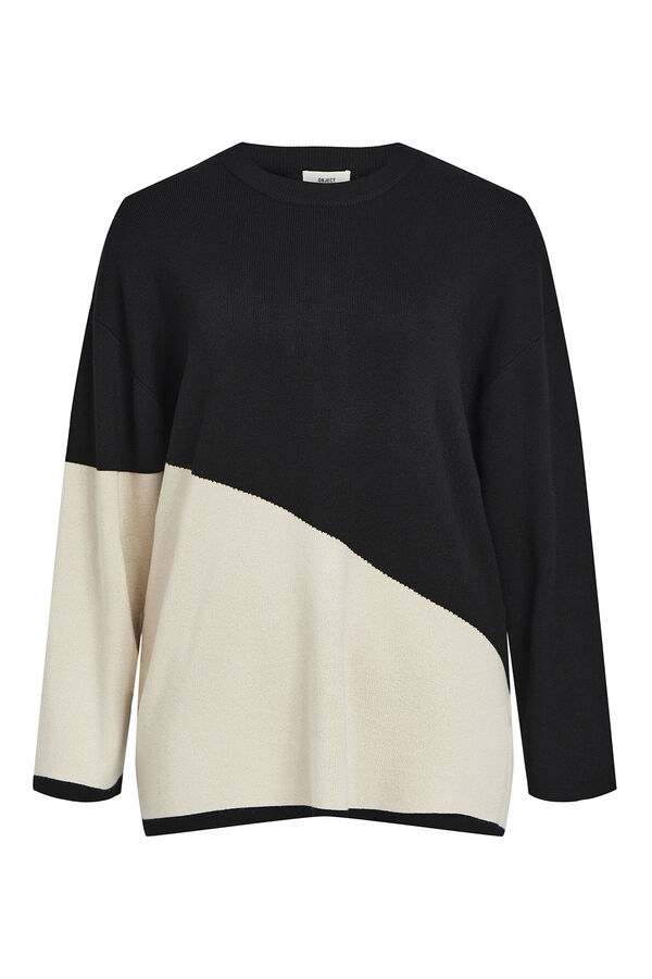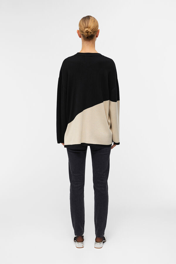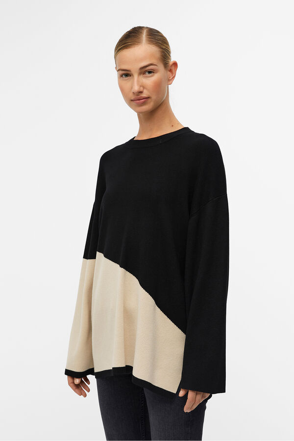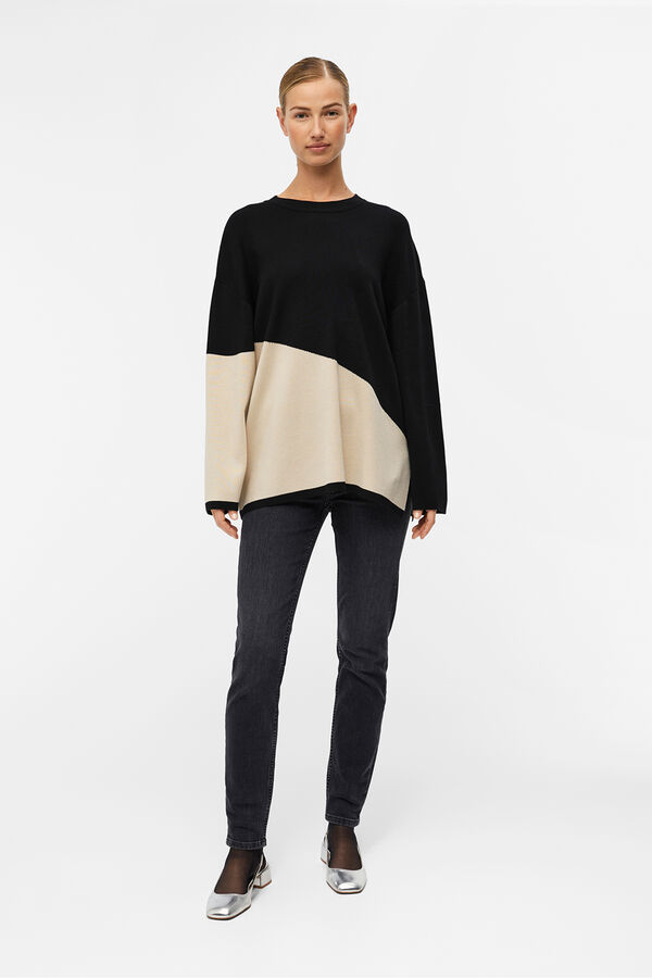 Jersey bicolor de manga larga con aberturas laterales y cuello redondo. Contiene viscosa lenzing ECOVERO. Altura modelo: 1,77 cm. Lleva la talla S. Te recomendamos tu talla habitual.