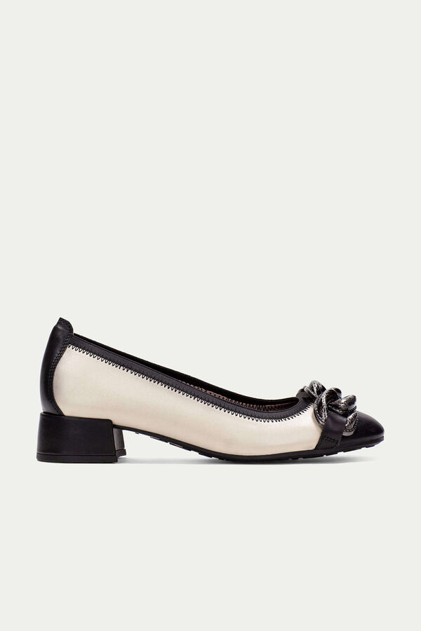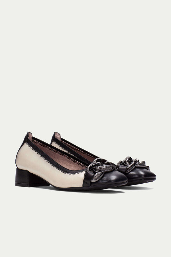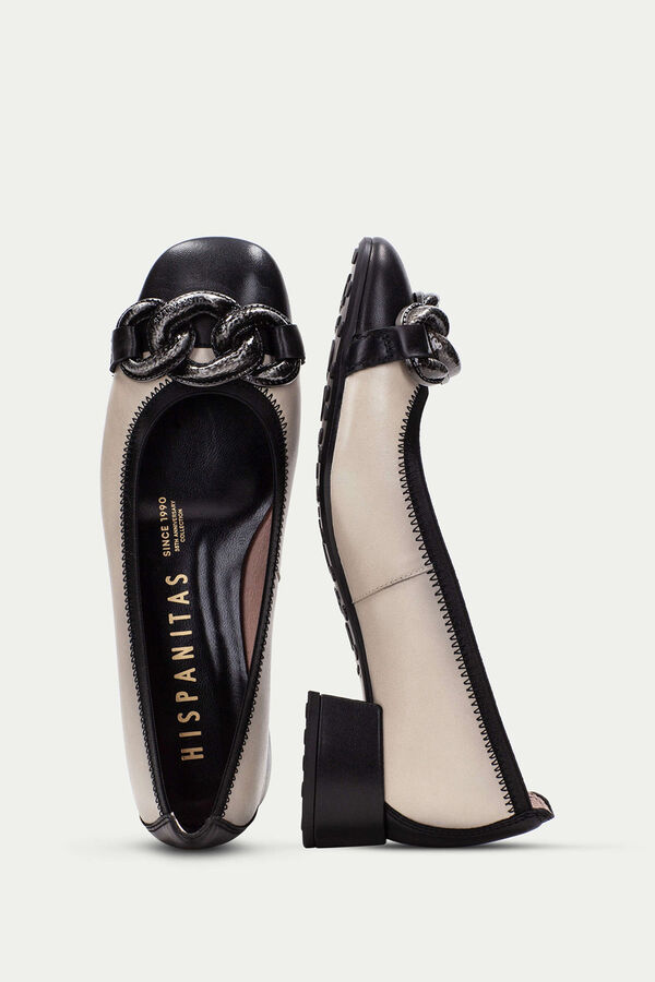 Bailarina bicolor de punta cuadrada con detalle de cadena en el empeine
