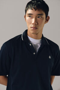 -Front placket with buttons, contrasting neck tips and embroidered logo on the chest