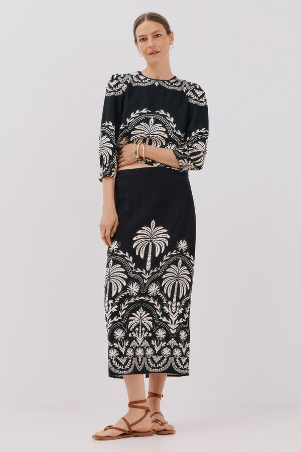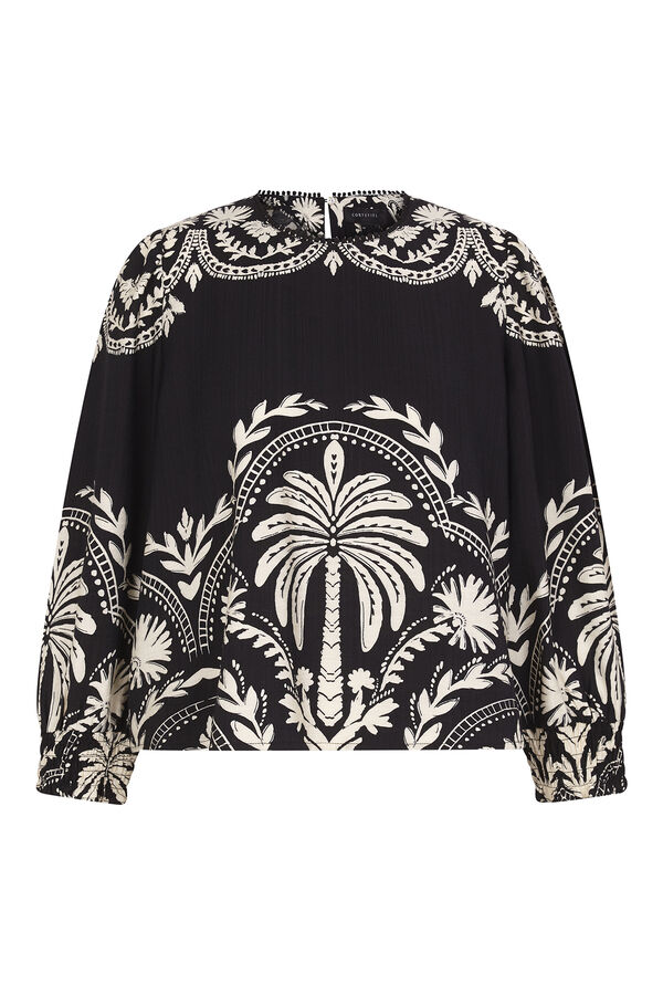 -Printed round neck blouse. - Long sleeves with Elastic cuffs - Straight cut hem.